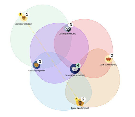 Sie nehmen an einem Forschungsprojekt teil. Ihr Beitrag zu unserem Forschungsprojekt ermöglicht es Wissenschaftlern, mehr über Organisationsdynamik, Dimensionen psychologischer Sicherheit, Spannungsfelder sowie Selbst- und Fremdwahrnehmung innerhalb von Teams herauszufinden. Wir verwenden auch aggregierte Spieldaten, um unsere Software zu verbessern und Muster im Kontext unserer Forschungsfragen zu identifizieren. Durch die Nutzung der Software bestätigen Sie Ihre Akzeptanz der Nutzungsbedingungen. Ihre Teilnahme ist freiwillig. Sie können das Experiment jederzeit beenden, indem Sie Ihren Browser schließen.
